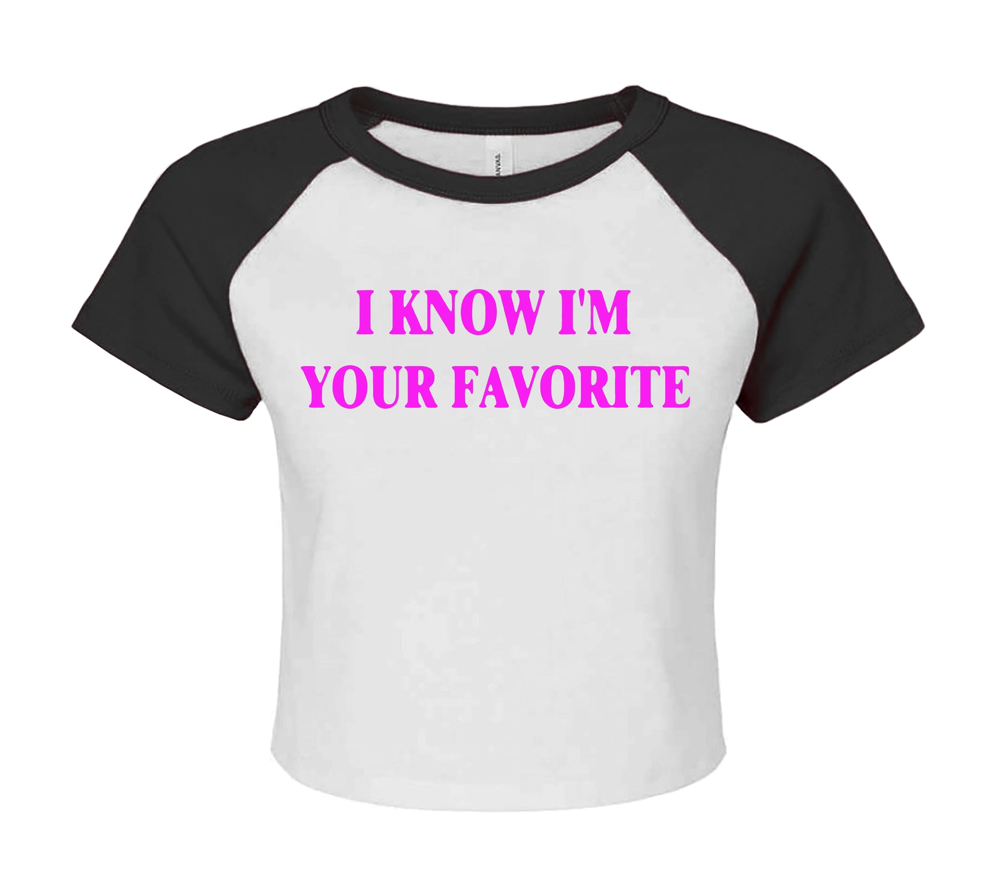 BRAND NEW I KNOW I'M YOUR TOP QUALITY FRONT PRINT RAGLAN CROP TOP.